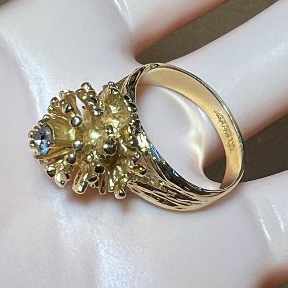 Vintage 18k HGE Esco pineapple ring with clear stone Size 7