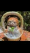 Vintage 1905 Lusterware Cat In Yellow Basket Green Bow Made In Brazil Whimsical