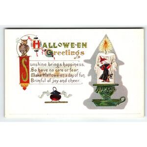 Vintage 1907-1915 Halloween Greetings Witch Candle Barton & Spooner Embossed