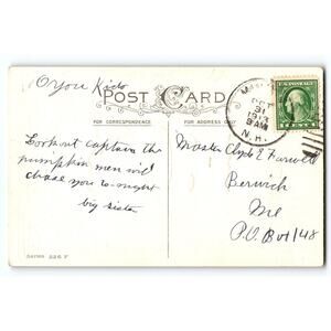 On the reverse, the postcard is postmarked October 31, 1913 from New Hampshire, complete with a 1-cent George Washington stamp. The handwritten note adds personal historic charm, referencing Halloween pranks and signed "big sister." The divided back design allows space for correspondence and address, typical for this era. This original lithographed Halloween postcard captures the nostalgic spirit of early 1900s holiday traditions and makes a delightful addition to any collection of antique ephemera or vintage holiday memorabilia.