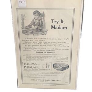 Vintage 1916 Quaker Oats Company Try It Madam Puffed Wheat Rice Ad Advertisement