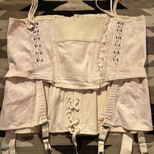 Vintage 1920's Camp Fan Lace Corset Peach Pink Antique Girdle Canvas Rare