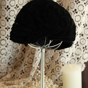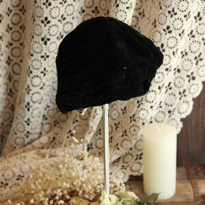 Vintage 1920s Cloche Hat, Black Velvet Southern California Modes Victoria
