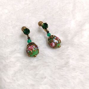 Vintage 1920's Hand Painted Green Glass Bead Screw Back Earrings