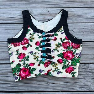 Vintage 1920s Antique Slovak Bustier Women’s Floral Handmade Vest Blouse in gently used condition. Fits like a women’s small. Pit to pit 15 3/4”, total length 18”.