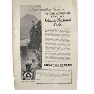 Vintage 1927 Great Northern Glacier National Park Ad Advertisement
