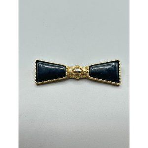 Vintage 1928 Brand Pin Brooch Victorian Black Black Bow Bar Pin Gold Tone Metal