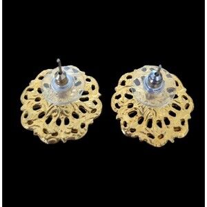 Vintage 1928 Gold Tone Flower Earrings Shiny Rhinestones Pierced