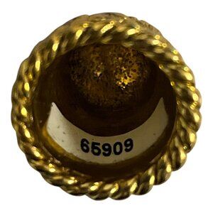 Vintage collectible thimble by 1928 Jewelry Co., featuring a gold-tone finish with ornate raised floral and rope-edge design. Comes in its original velvet and tapestry-style box marked “1928.”