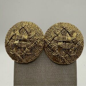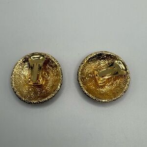 Vintage 1928 Textured Gold Tone Clip-on Earrings Filigree Scroll Big Round Dome