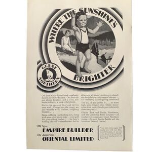 Vintage 1930 Great Northern Sunshine’s Brighter Ad Ad Advertisment