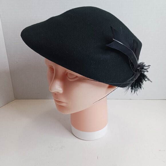Good vintage condition, please scroll picture for more details. Vintage 1930's Black Gothic Style 100% Wool Cloche Hat with Feathers. Pet and smoke free home.