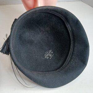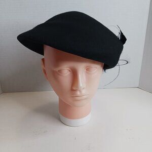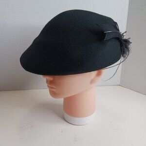Vintage 1930's Black Gothic Style 100% Wool Cloche Hat with Feathers