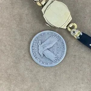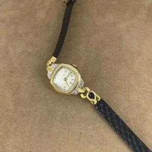 Vintage 1931 Bulova Movement 17 Jewel 6AM Movement. 10 karat Gold Filled 2 Tone Yellow Gold Rolled with White Gold & 4 Diamonds App .05 Ct. 7 inch Lizard Strap Band White Gold & 4 Diamonds in a Illusion Setting The White Gold & Diamond Bezel has a machined finish New Serenata Lizard Leather 8 inch Strap along with a 1/20 10K GF Band. Size 5-7 inches Expandable band, GF tops Stainless steel back The Bulova watch works it keeps time and is in very good Plus +++ condition.
