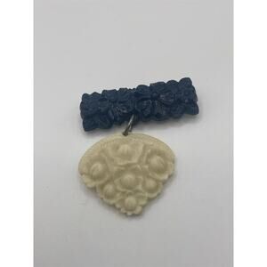 Vintage 1930s Carved Celluloid Floral Brooch Blue and white dangle pin
