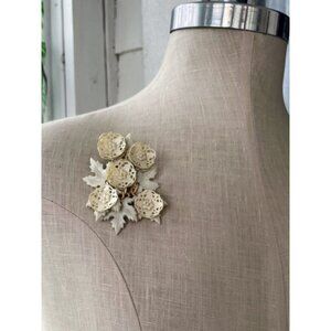 Vintage 1930s Carved Celluloid Large Dangle Brooch Leaves Flowers