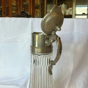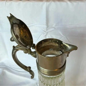 Vintage 1930s Glass + Silver Plated Beverage Pitcher 14 1/4”in
