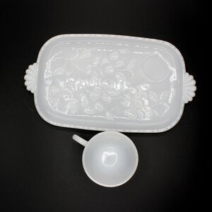 This vintage Hazel Atlas Dogwood Pattern Milk Glass Luncheon Plate & Cup Set is a charming and collectible find.