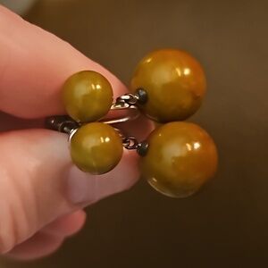 Vintage 1930s Marbled Olive Green Bakelite Screw-on Drop Earrings