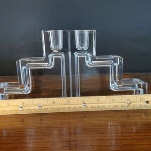 Vintage Metropolitan Museum of Art Wilber Orme Architectural Glass Candlestick Pair is in Excellent Perfect Condition.