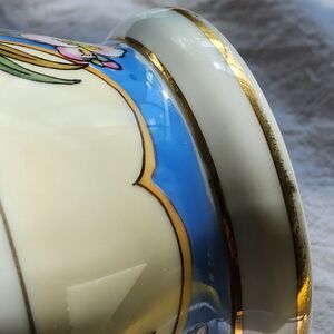 In excellent vintage condition with no chips, cracks, or crazing. Has some rubb8ng wear off to the gold trim band at the top. Please see photos for full condition inspection.