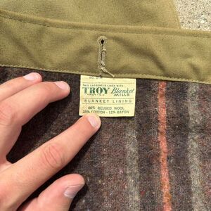 Good vintage condition, Troy blanket lined, obvious sun fading and distressing in some spots, no rips or tears, could use dry cleaned. made in USA