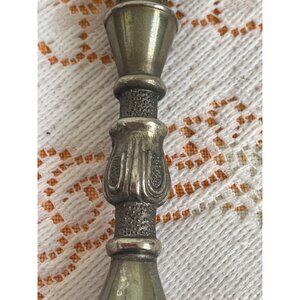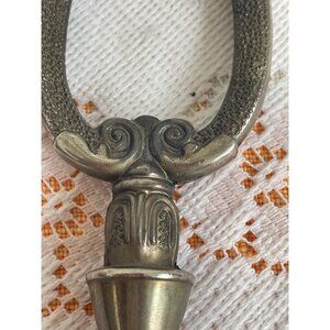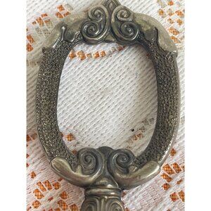 This exquisite 1930s vintage lamp finial or handle adds a touch of elegance to any décor. Its ornate design and silverplate finish make it a charming collector's piece or a unique accent for home lighting. I purchased a large collection of lamps and final part. This piece was in the finial collection but I am not sure if that was its original purpose.It does have a deep enough threading to be used for this. It is about 5.5" tall. It is in good vintage condition.