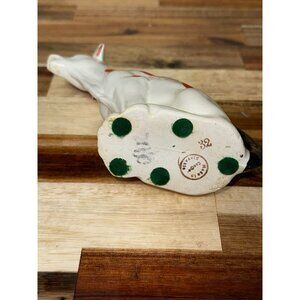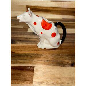 This Vintage 1930s Spotted Porcelain Cow Creamer, made in Czech Slovakia, is a charming addition to any collection. Measuring 5"H x 5 1/2"L x 2"W, it's an attractive, quirky piece with historical significance.
