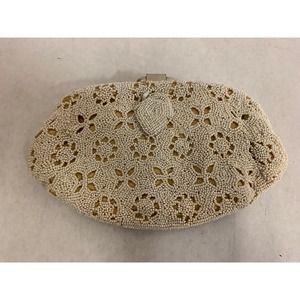Vintage 1930's White Beaded Evening Bag, Wedding Clutch, Made in Belgium