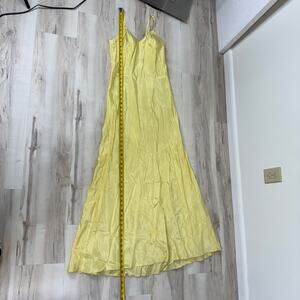 The Slip: Heavy, shiny yellow fabric (likely Rayon Satin/Acetate). It is sturdy, bias-cut style, and in excellent condition for its age.