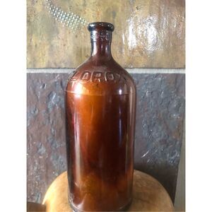 This is an authentic amber glass Clorox bottle dating to the 1930s–1940s, a classic example of early household packaging