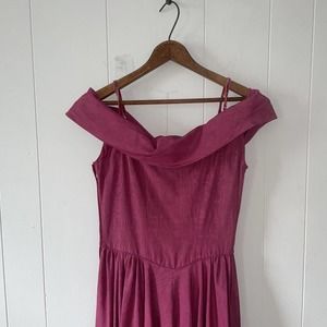 Vintage 1930s-1950s Fuschia Moire Evening/Formal/Cocktail Dress Off Shoulder
