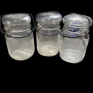 Vintage 1933-1962 Set of 3 Ball Ideal Lightning Pint Jars no gaskets