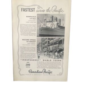 Vintage 1934 Canadian Pacific Fastest Across the Pacific Ad Advertisement
