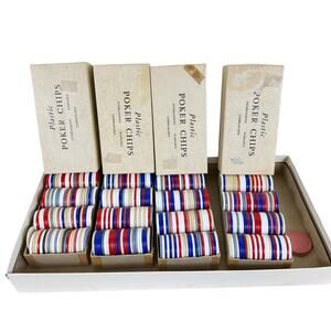 Vintage 1937 Royal Rummy Game, sometimes called Michigan. Comes with original box (Has some wear), table-size game sheet (has small tear on one crease), 4 boxes poker chips. Does not come with playing cards. Instructions written on game sheet.