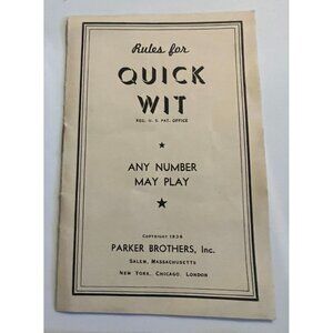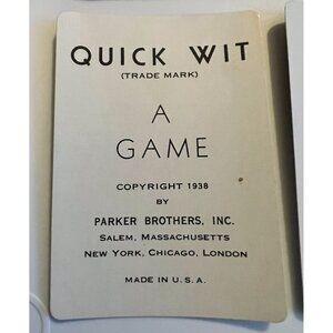 Vintage 1938 Parker Brothers Quick Wit Game Complete Set w/ Cards & Instructions