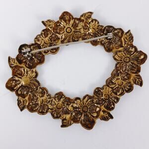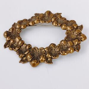 Vintage 1940s 1950s Brooch Gold Tone Dogwood Flower Wreath Mid Century Pin