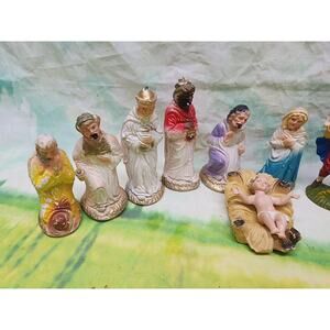 Vintage 1940s - 1950s Chalkware/Plaster 13 pc NATIVITY SET Italy Composition