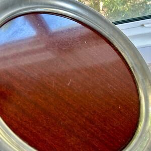 Vintage 1940s American Pewter & Faux Wood Formica Round Cocktail Bar Tray Deco