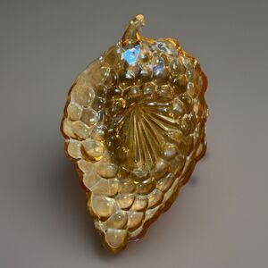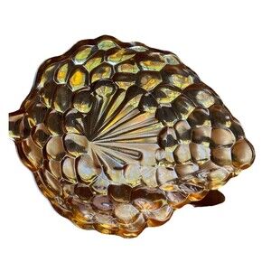 Vintage 1940s Anchor Hocking Amber/Orange Glass, Bubble Grape Shaped Relish Dish