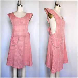 Vintage 1940s Apron - Gingham Plaid Checkered Apron Cottage Chic French Country