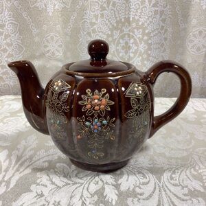 Vintage 1940’s Ceramic Brown Moriage Gold Gilt Teapot - Japan