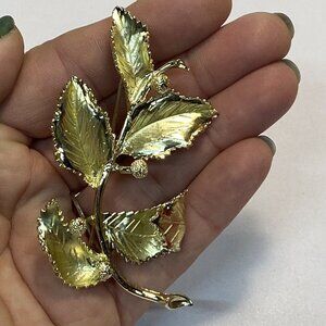 Vintage 1940's Coro Gold Plated Five Leaves Berry Brooch Pin