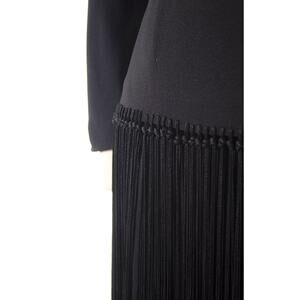 Vintage 1940s Dress 40s Fringe Tassels Black Rayon Long Sleeve Sheath Party