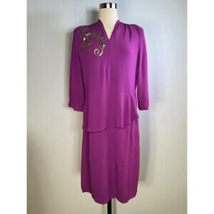 Vintage 1940s Dress Peplum Sequined Plus Sized Crepe Sequin Purple XL 1X
