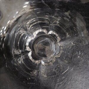 An amazing 1940s piece of clear art glass by the Duncan Miller Glass Company. This is a centerpiece bowl that you will proudly display or use for fruits, etc. Its rim has a scalloped edge, and also an open lace edge. The cuts are small squares of various sizes. The bowl narrows to half the size of the diameter. On the bottom of the bowl is a pretty floral design of 6 petals. What is truly amazing is how something so beautiful as this has made it for almost 100 years without any breakage or any cracks, chips, etc. This piece is in very nice vintage condition. I don't see any signs of flaws. The craftsmanship on this piece is high quality and will endure for many, many more years. It measures 10.5 inches in diameter and 5 inches high. Condition is very nice pre owned vintage. Non smoking pet free home. @ ER NW Boxed