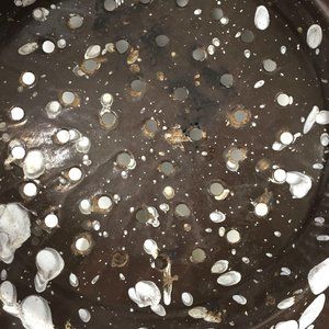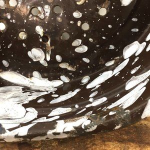 Add a touch of rustic charm to your kitchen with this authentic 1940s enamelware colander. Featuring a classic speckled blue and white pattern, this piece serves as both a functional kitchen tool and a delightful decorative item.
