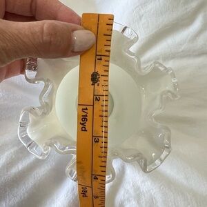 Vintage 1940s Fenton Milk Glass Ruffled Edged 4” Vase