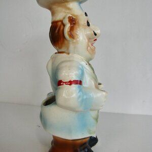 Jolly chef utensil holder as seen in Monica's kitchen on "Friends." Hi-Mark ceramic is wonderfully shabby with crazing and flaked cold paint. Measures approximately 11.5" tall.