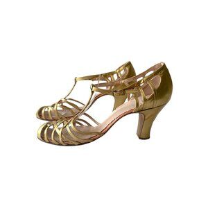 Vintage 1940s Gold T-Strap Flapper Heels by Radiant Styles – Mid Century Glamour